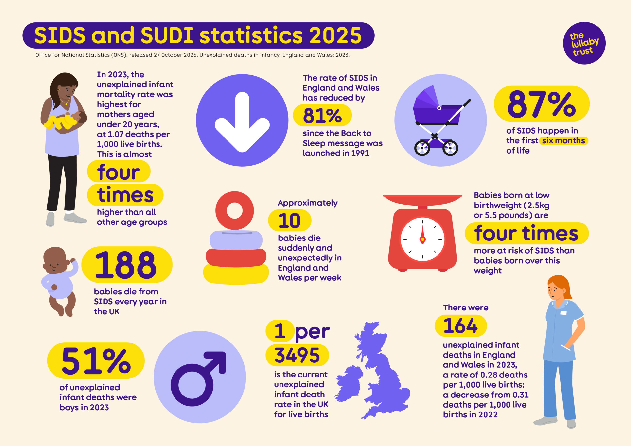 A4 document demonstrating some of the key statistics on SIDS and SUDI from 2025.